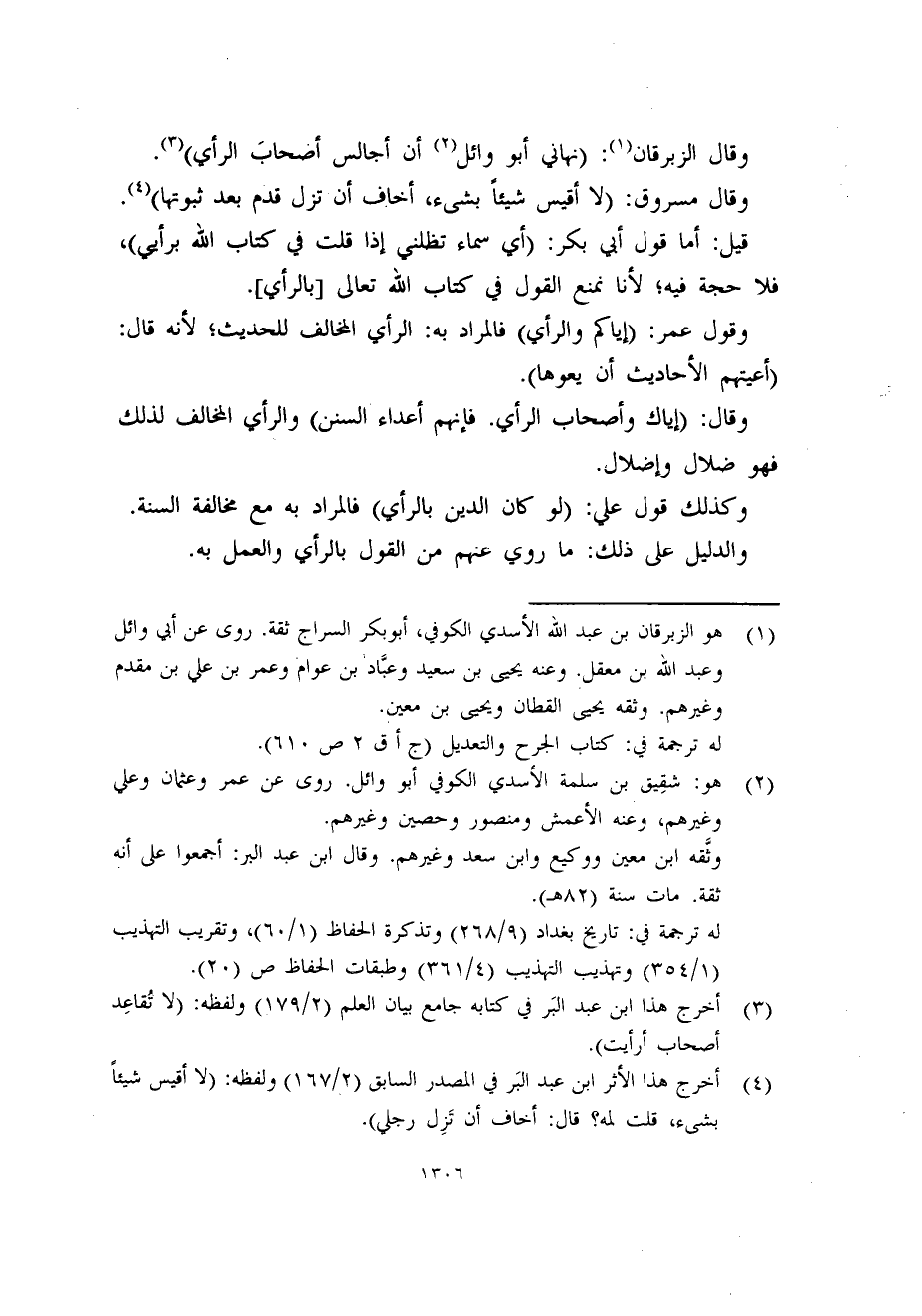 وقال الزبرقان (1) : (نهاني أبو وائل (2) أن أجالس أصحابَ الرأي) (3) .