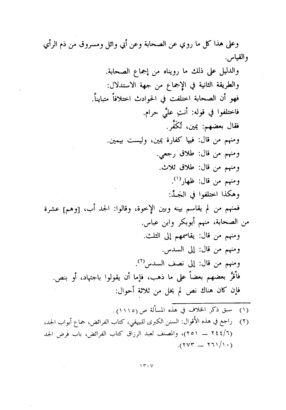 فأقرَّ بعضهم بعضاً على ما ذهب، فإما أن يقولوا باجتهاد، أو بنص.