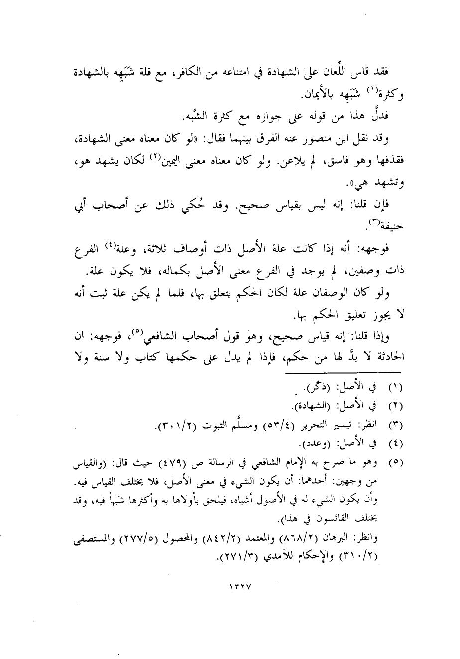فقد قاس اللِّعان على الشهادة في امتناعه من الكافر، مع قلة شَبَهِه بالشهادة وكثرة (1) شَبَهِه بالأيمان.