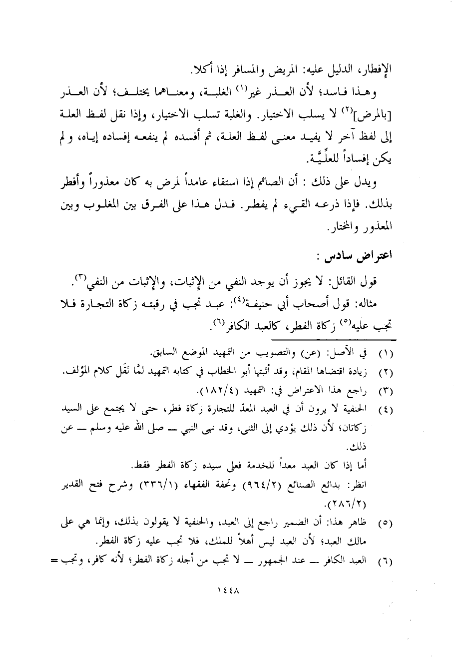 (2) زيادة اقتضاها المقام، وقد أثبتها أبو الخطاب في كتابه التمهيد لمَّا نَقَل كلام المؤلف.