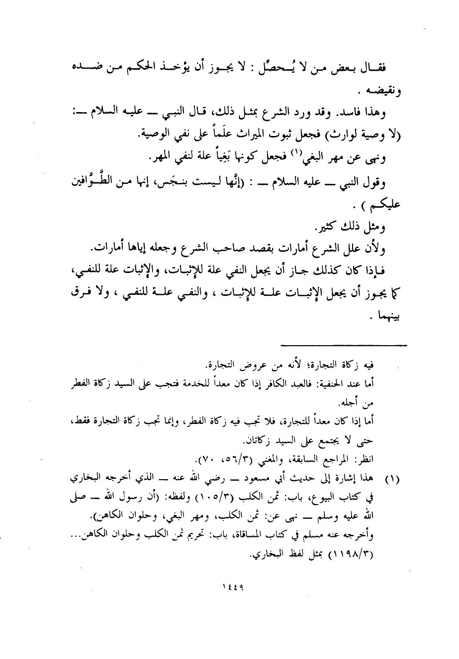 فإذا كان كذلك جاز أن يجعل النفي علة للإثبات، والإثبات علة للنفي، كما يجوز أن يجعل الإثبات علة للإثبات، والنفي علة للنفي، ولا فرق بينهما.