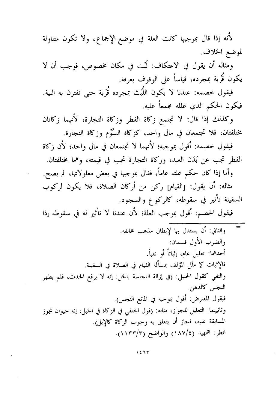 وثانيهما: التعليل للجواز، مثاله: (قول الحنفي في الزكاة في الخيل: إنه حيوان تجوز المسابقة عليه، فجاز أن يتعلق به وجوب الزكاة كالإِبل) .