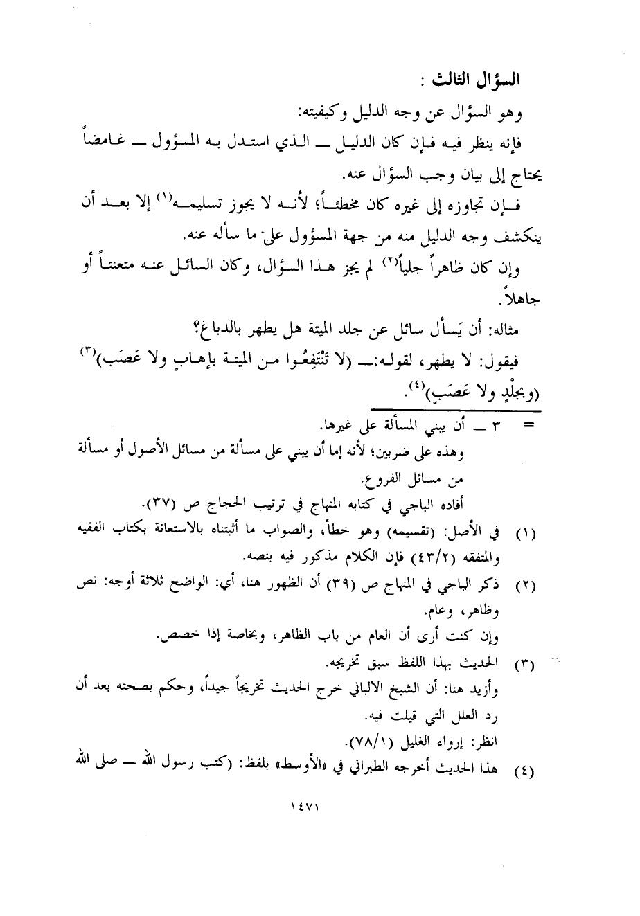 فإنه ينظر فيه فإن كان الدليل -الذي استدل به المسؤول- غامضاً يحتاج إلى بيان وجب السؤال عنه.