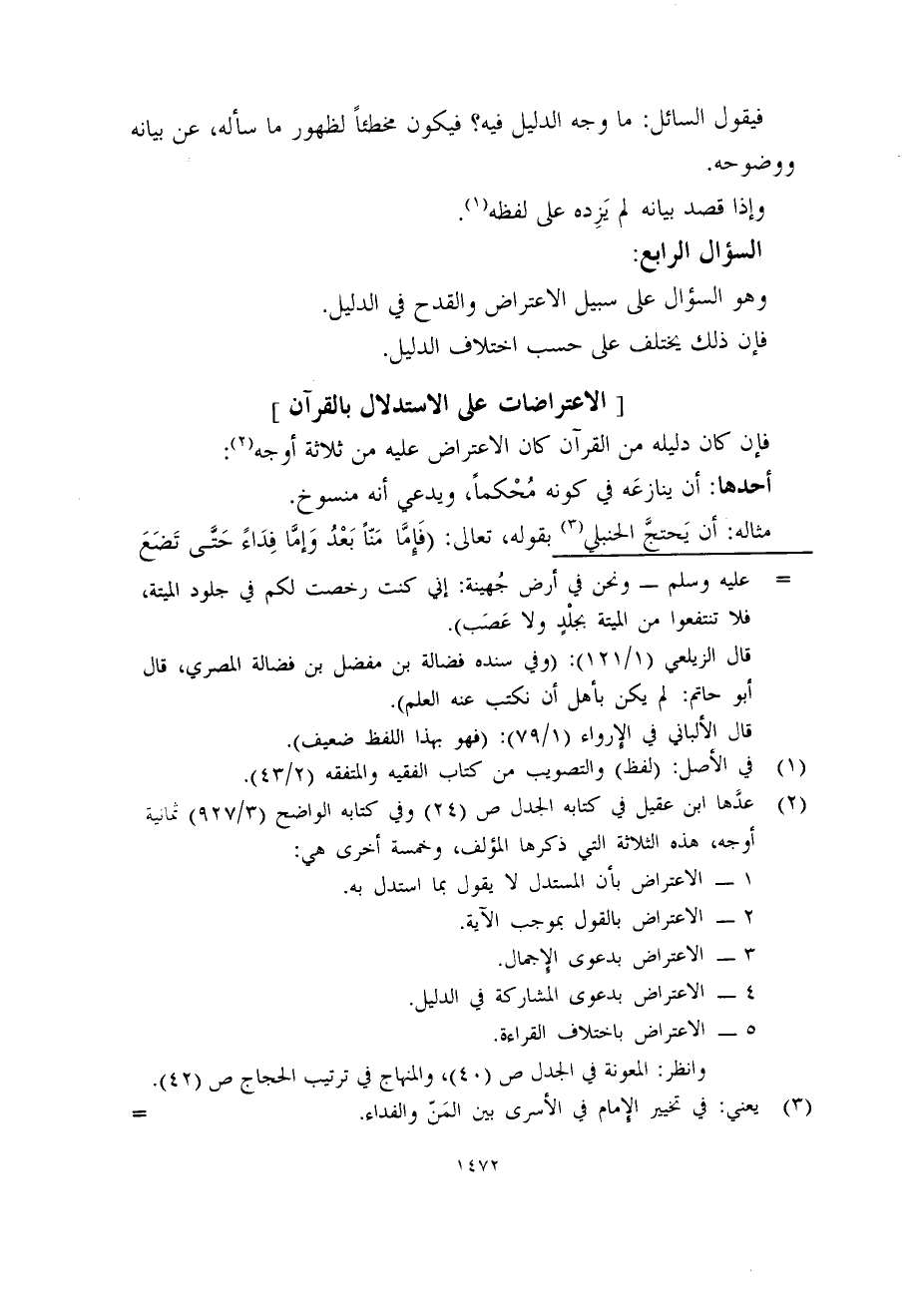 فإن كان دليله من القرآن كان الاعتراض عليه من ثلاثة أوجه (2) :