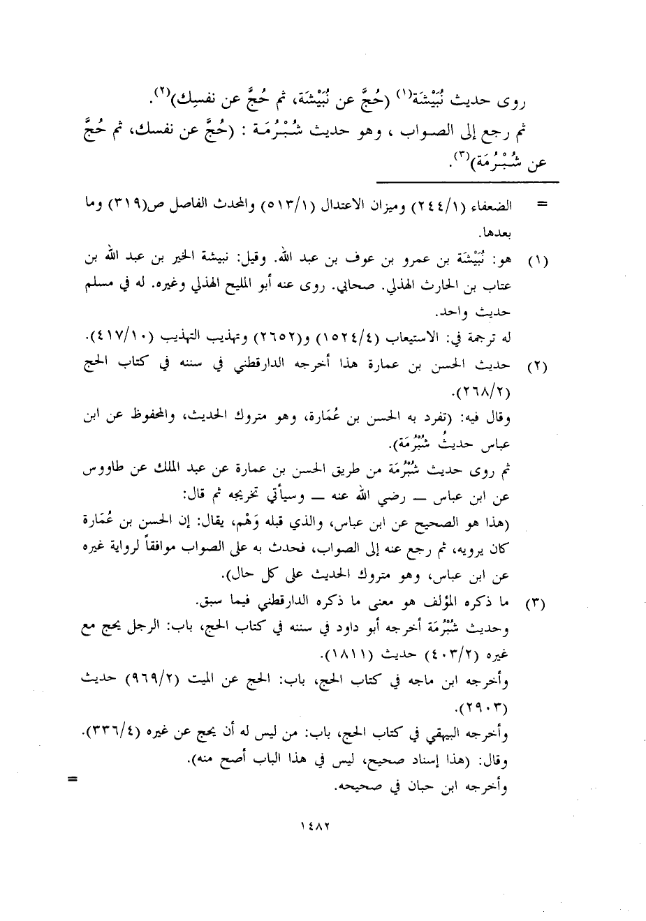 ثم رجع إلى الصواب، وهو حديث شُبْرُمَة: (حُجَّ عن نفسك، ثم حُج عن شُبْرُمَة) (3) .