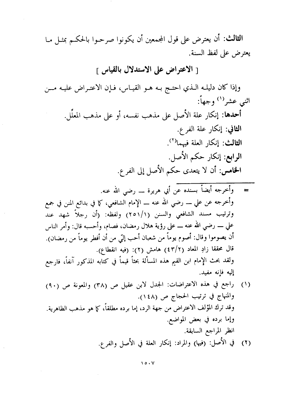 (2) في الأصل: (فيها) والمراد: إنكار العلة في الأصل والفرع.
