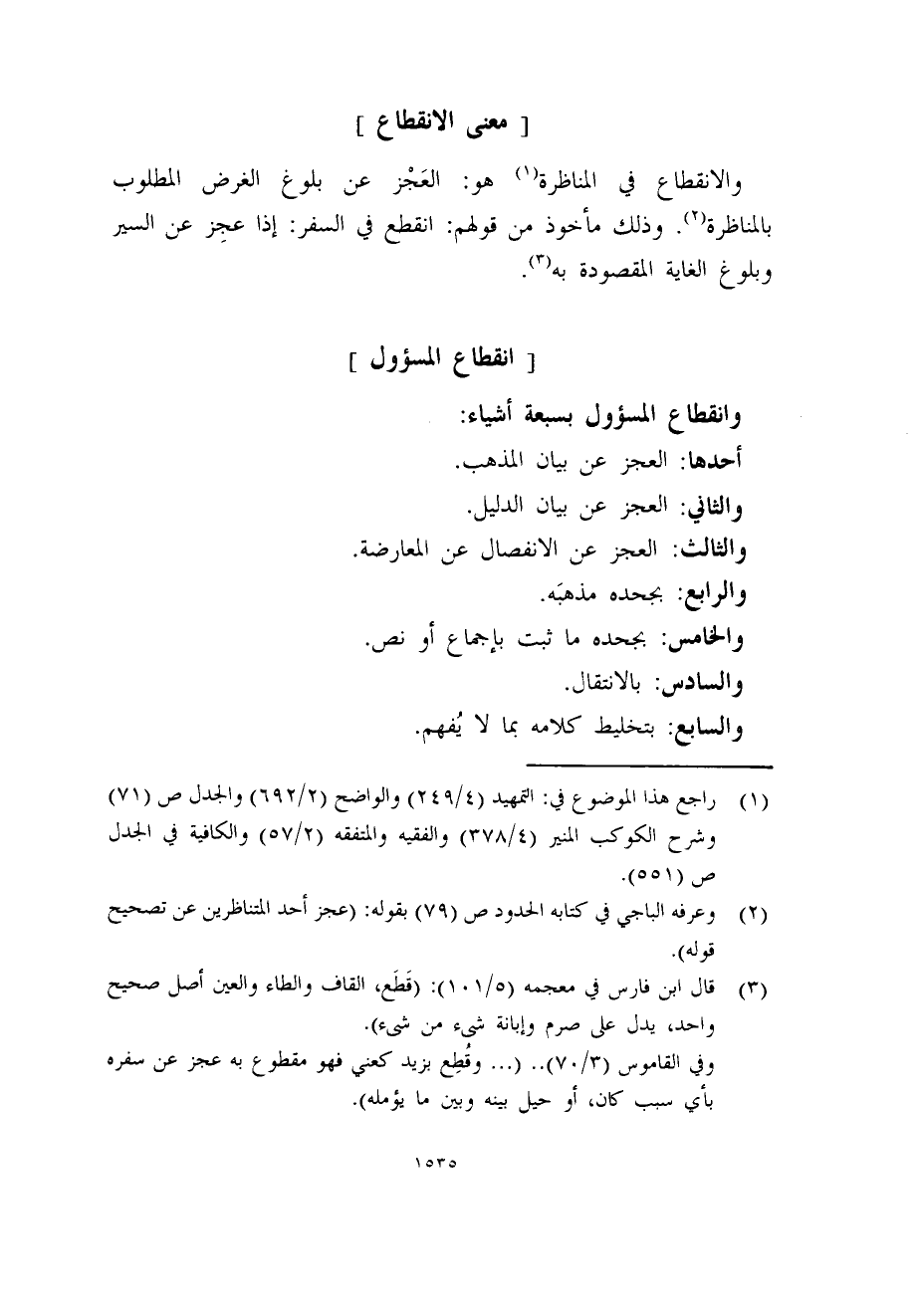(2) وعرفه الباجي في كتابه الحدود ص (79) بقوله: (عجز أحد المتناظرين عن تصحيح قوله) .