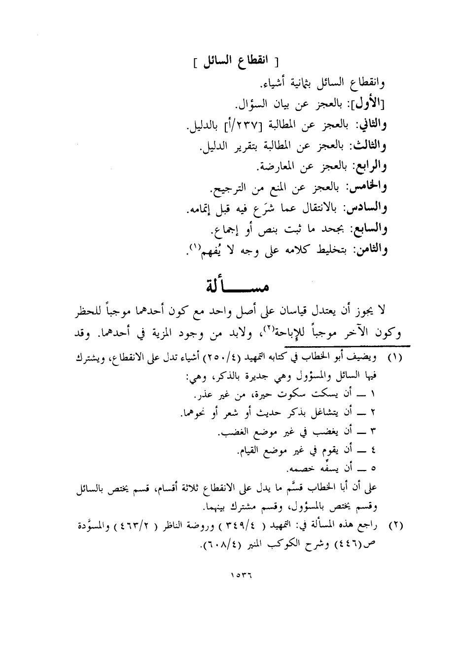(1) ويضيف أبو الخطاب في كتابه التمهيد (4/250) أشياء تدل على الانقطاع، يشترك فيها السائل والمسؤول وهي جديرة بالذكر، وهي: