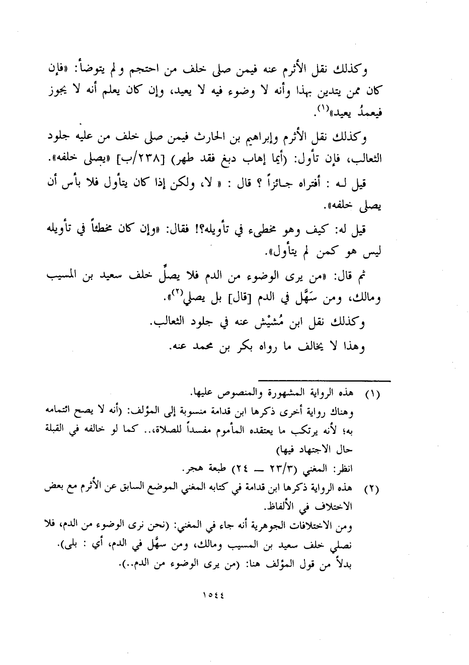 (2) هذه الرواية ذكرها ابن قدامة في كتابه المغني الموضع السابق عن الأثرم مع بعض الاختلاف في الألفاظ.