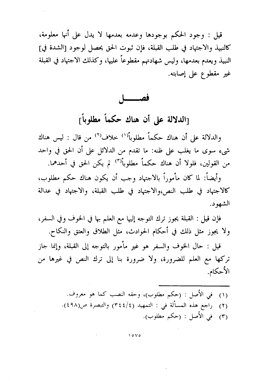 والدلالة على أن هناك حكماً مطلوباً (1) خلاف (2) من قال: ليس هناك شىء سوى ما يغلب على ظنه: ما تقدم من الدلائل على أن الحق في واحد من القولين، فلولا أن هناك حكماً مطلوباً (3) لم يكن الحق في أحدهما.