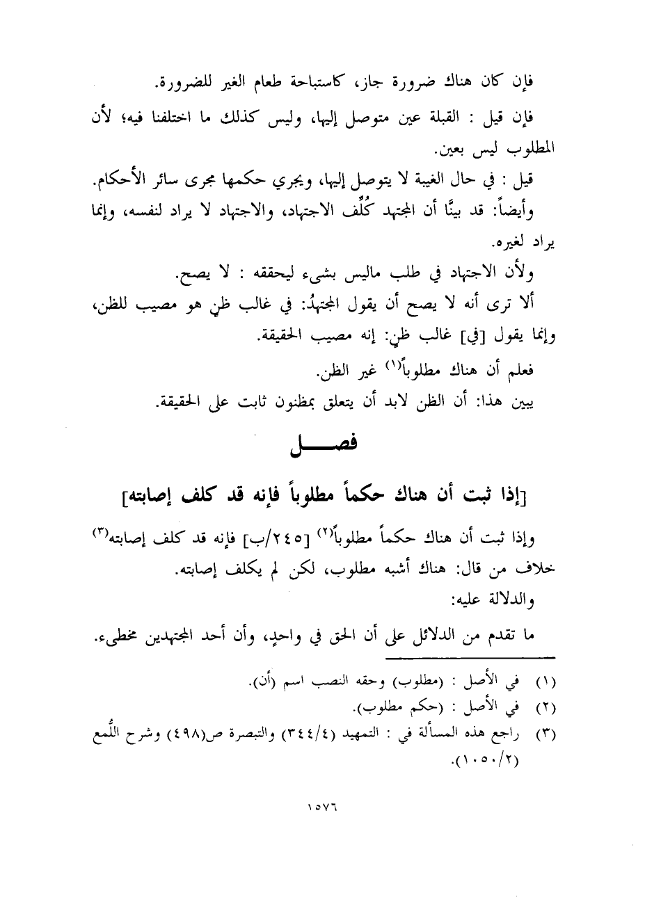 وإذا ثبت أن هناك حكماً مطلوباً (2) [245/ب] فإنه قد كلف إصابته (3) خلاف من قال: هناك أشبه مطلوب، لكن لم يكلف إصابته.