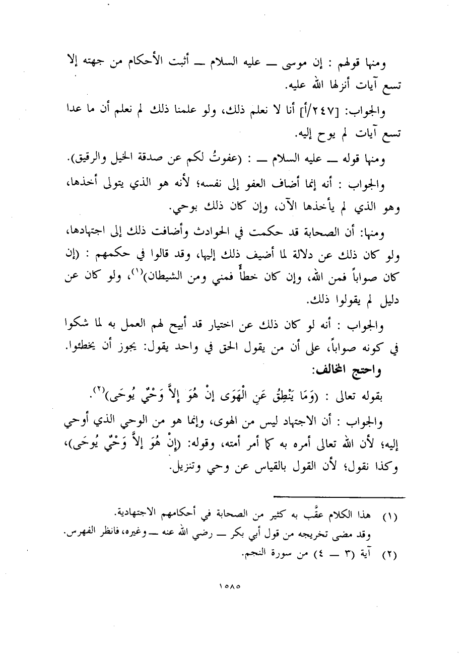 بقوله تعالى: (وَمَا يَنْطِقُ عَنِ الْهَوَى إنْ هُوَ إِلاَّ وَحْيٌ يُوحَى) (2) .