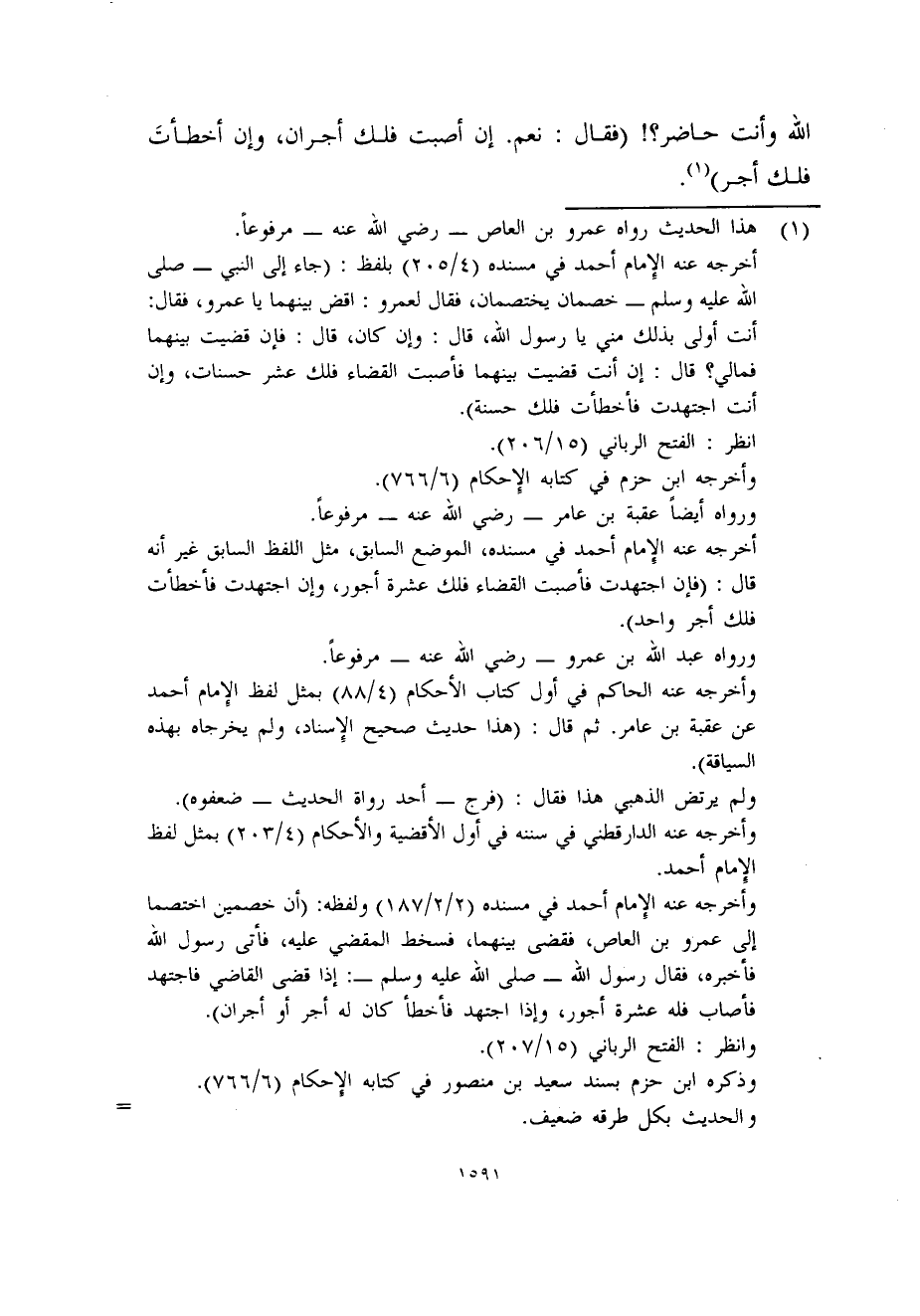 (1) هذا الحديث رواه عمرو بن العاص - رضي الله عنه - مرفوعاً.