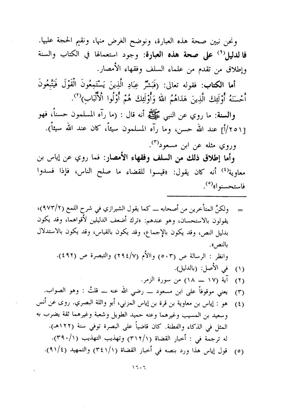 (5) قول إياس هذا ورد بنصه في أخبار القضاة (1/341) والتمهيد (4/91) .