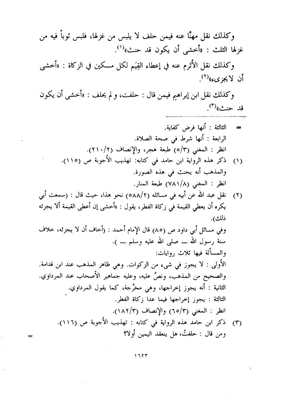 (3) ذكر ابن حامد هذه الرواية في كتابه: تهذيب الأجوبة ص (116) .