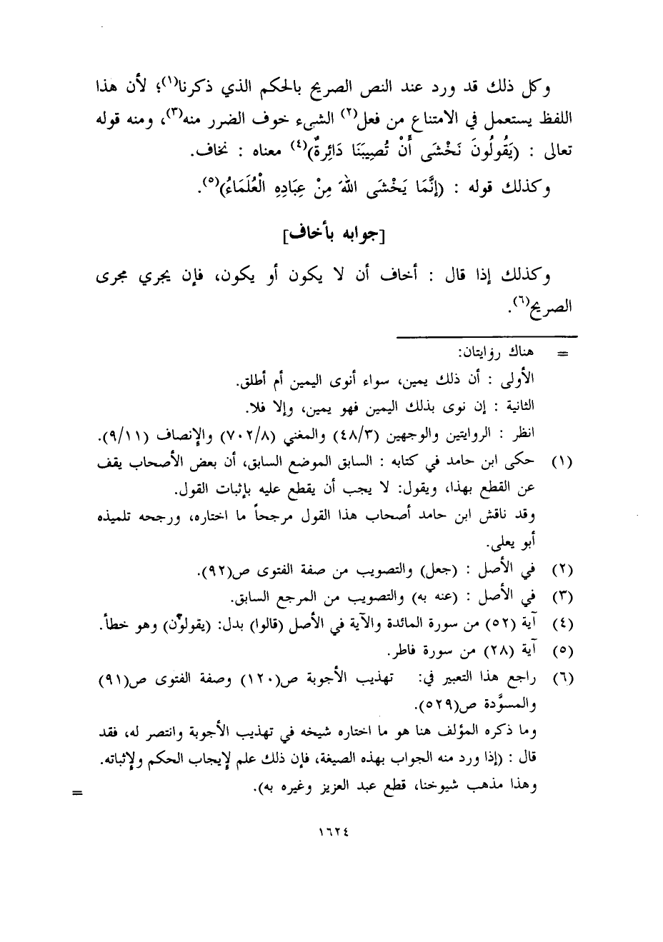 (6) راجع هذا التعبير في: تهذيب الأجوبة ص (120) وصفة الفتوى ص (91) والمسودة ص (529) .
