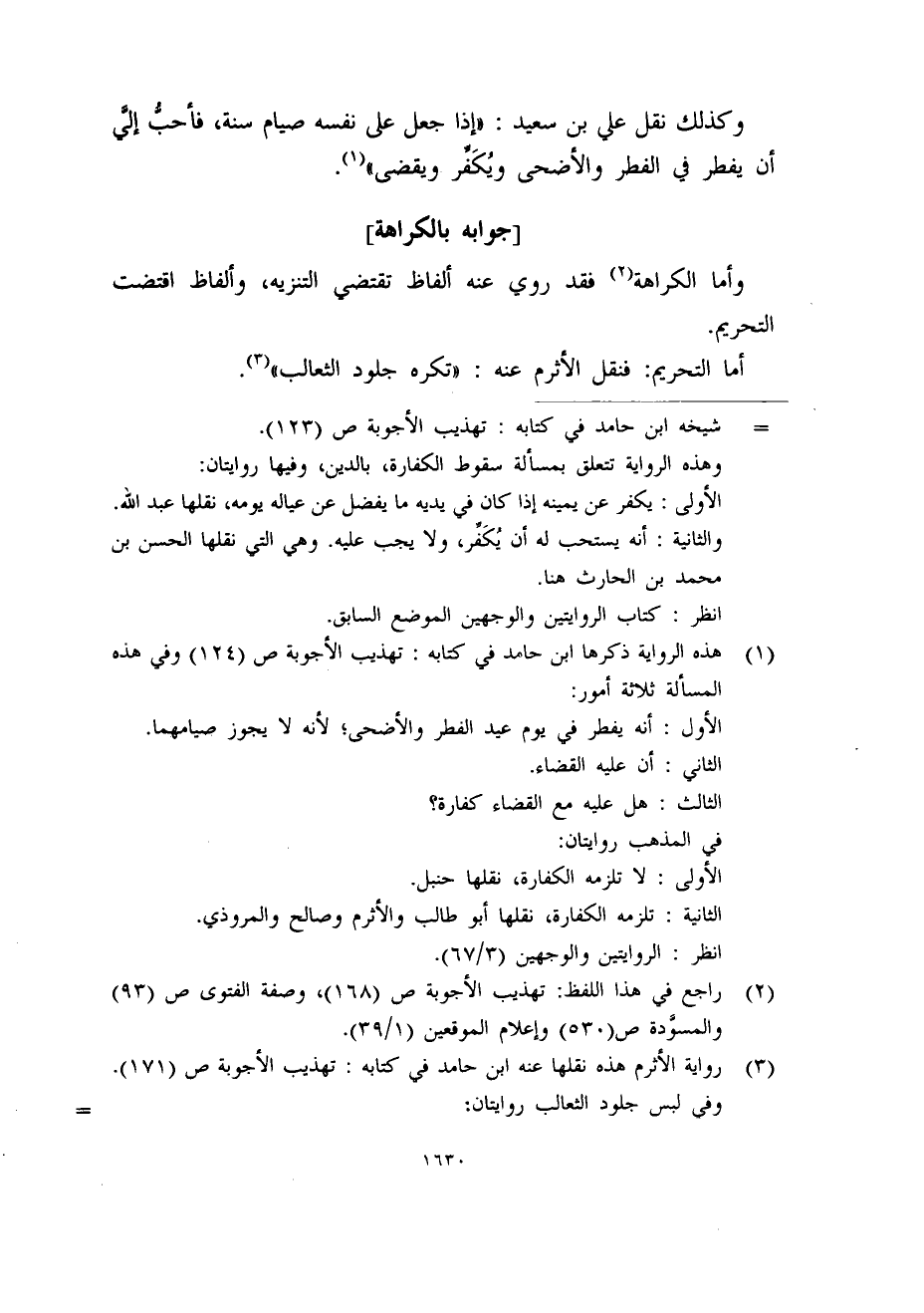 (1) هذه الرواية ذكرها ابن حامد في كتابه: تهذيب الأجوبة ص (124) وفي هذه المسألة ثلاثة أمور: