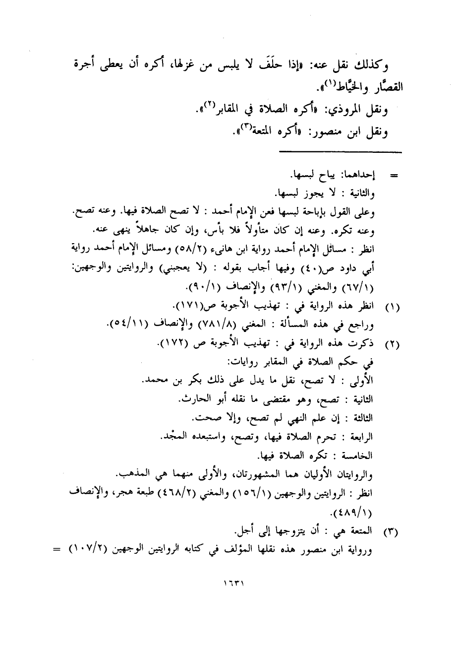 ورواية ابن منصور هذه نقلها المؤلف في كتابه الروايتين الوجهين (2/107) =