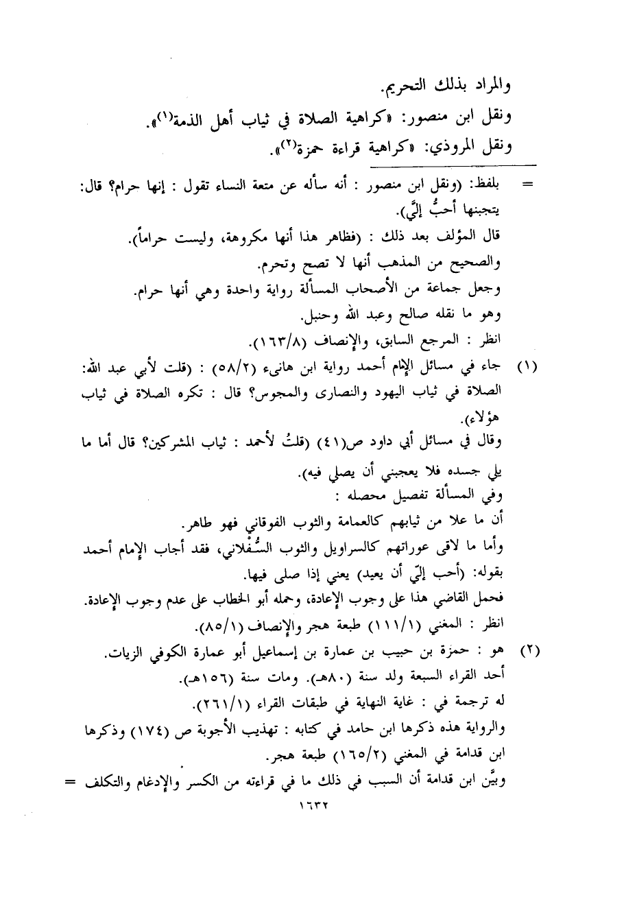 (1) جاء في مسائل الإمام أحمد رواية ابن هانىء (2/58) : (قلت لأبي عبد الله: الصلاة في ثياب اليهود والنصارى والمجوس؟ قال: تكره الصلاة في ثياب هؤلاء) .