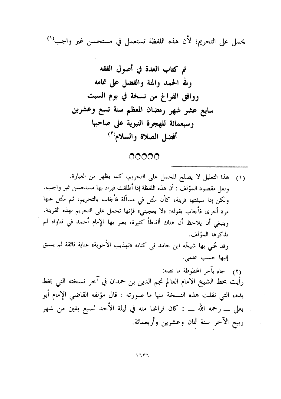 تم كتاب العدة في أصول الفقه