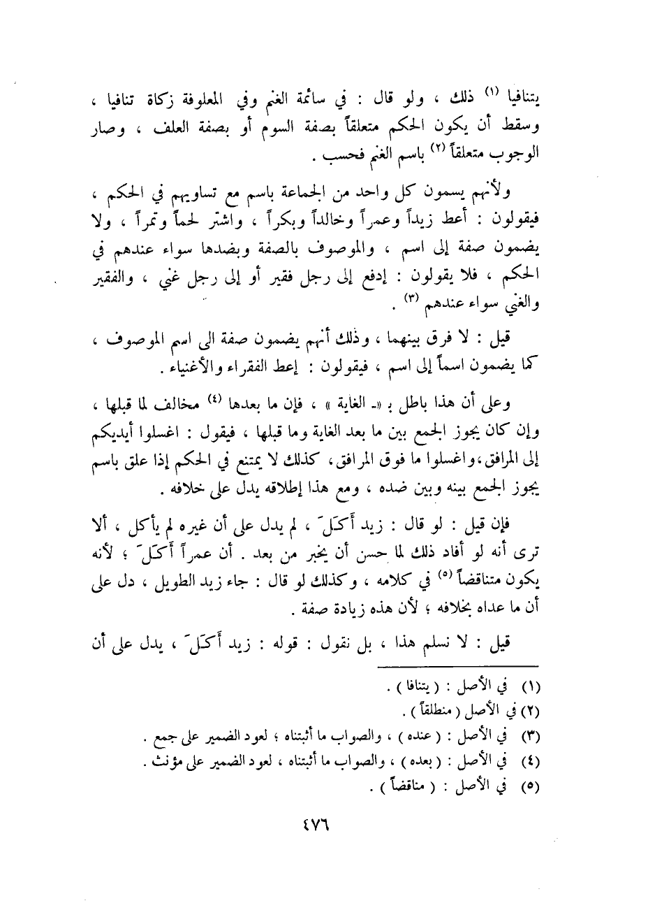 فإن قيل: لو قال: زيد أكل؛ لم يدل على أن غيره لم يأكل، ألا ترى أنه لو أفاد ذلك لما حسن أن يخبر من بعد. أن عمرًا أكل؛ لأنه يكون متناقضًا5 في كلامه، وكذلك لو قال: جاء زيد الطويل، دل على أن ما عداه بخلافه؛ لأن هذه زيادة صفة.