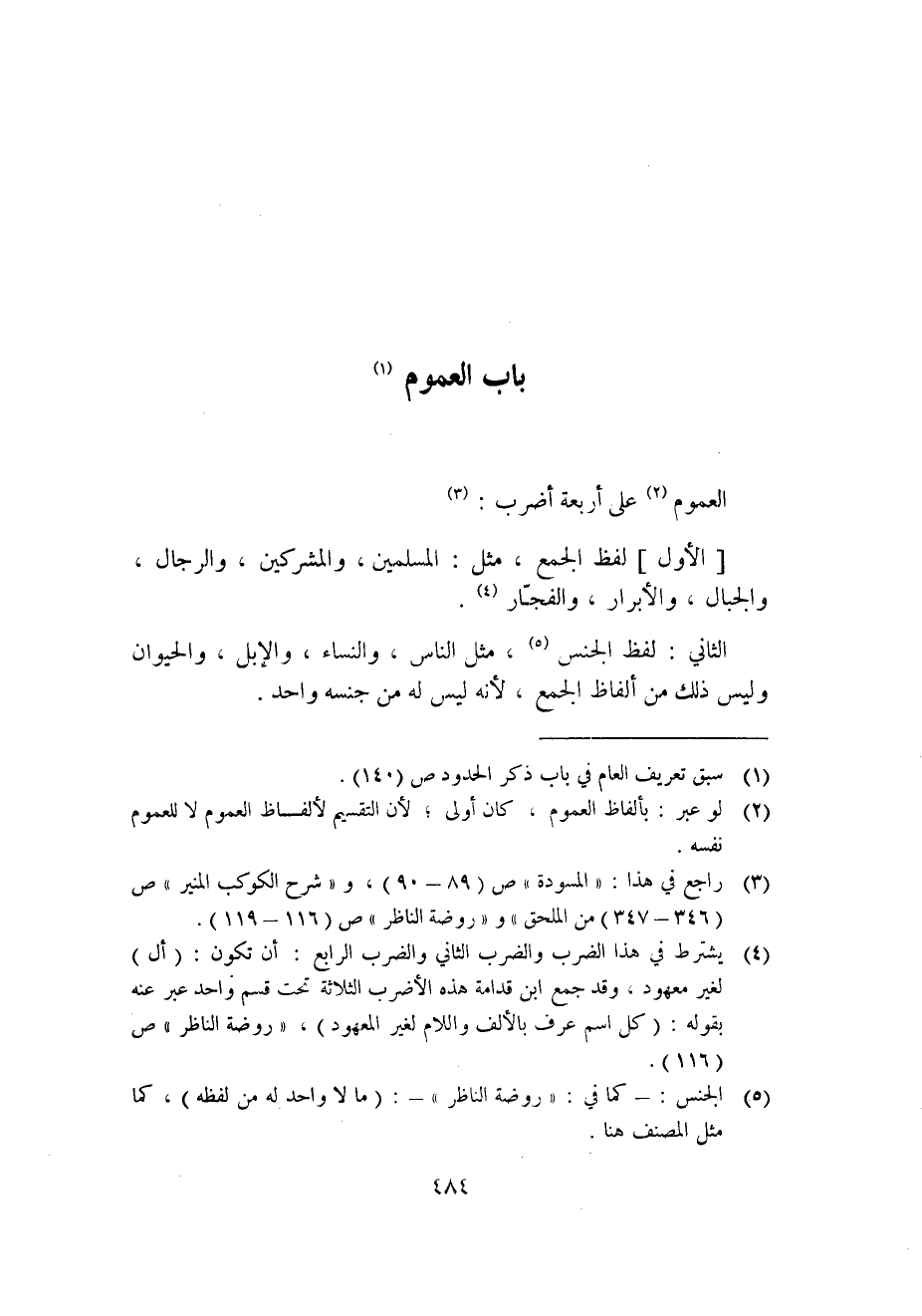 3 راجع في هذا: "المسودة" ص"89-90"، و "شرح الكوكب المنير" ص"346-347" من الملحق و "روضة الناظر" ص"116-119".