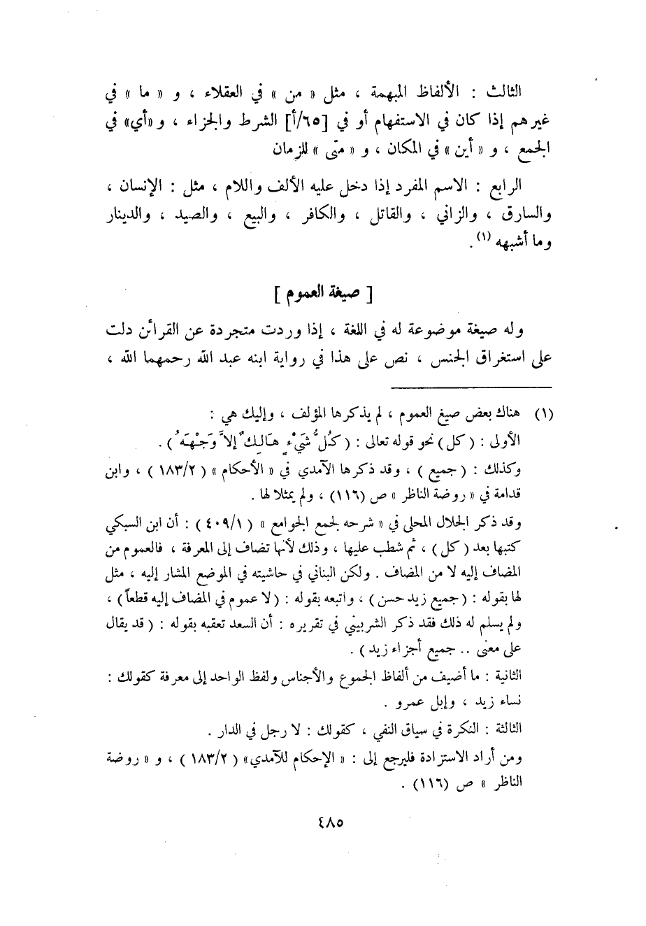 1 هناك بعض صيغ العموم، لم يذكرها المؤلف، وإليك هي: