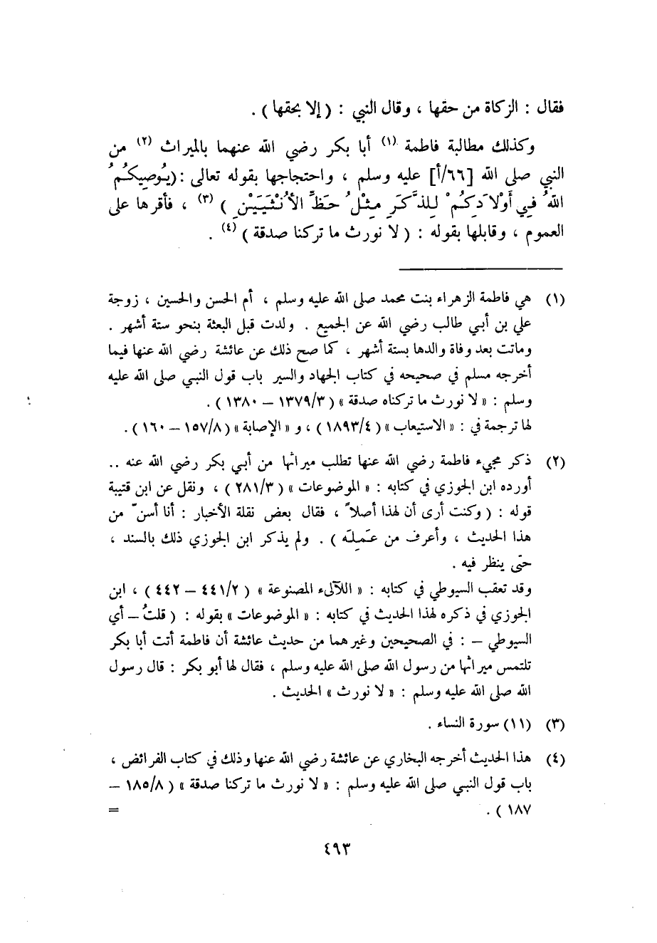 4 هذا الحديث أخرجه البخاري عن عائشة رضي الله عنها وذلك في كتاب الفرائض، باب قول النبي صلى الله عليه وسلم: "لا نورث ما تركنا صدقة": "8/185-187". وعنها أخرجه مسلم في كتاب الجهاد والسير باب قول النبي صلى الله عليه وسلم: "لا نورث" الحديث "3/1379-1383".