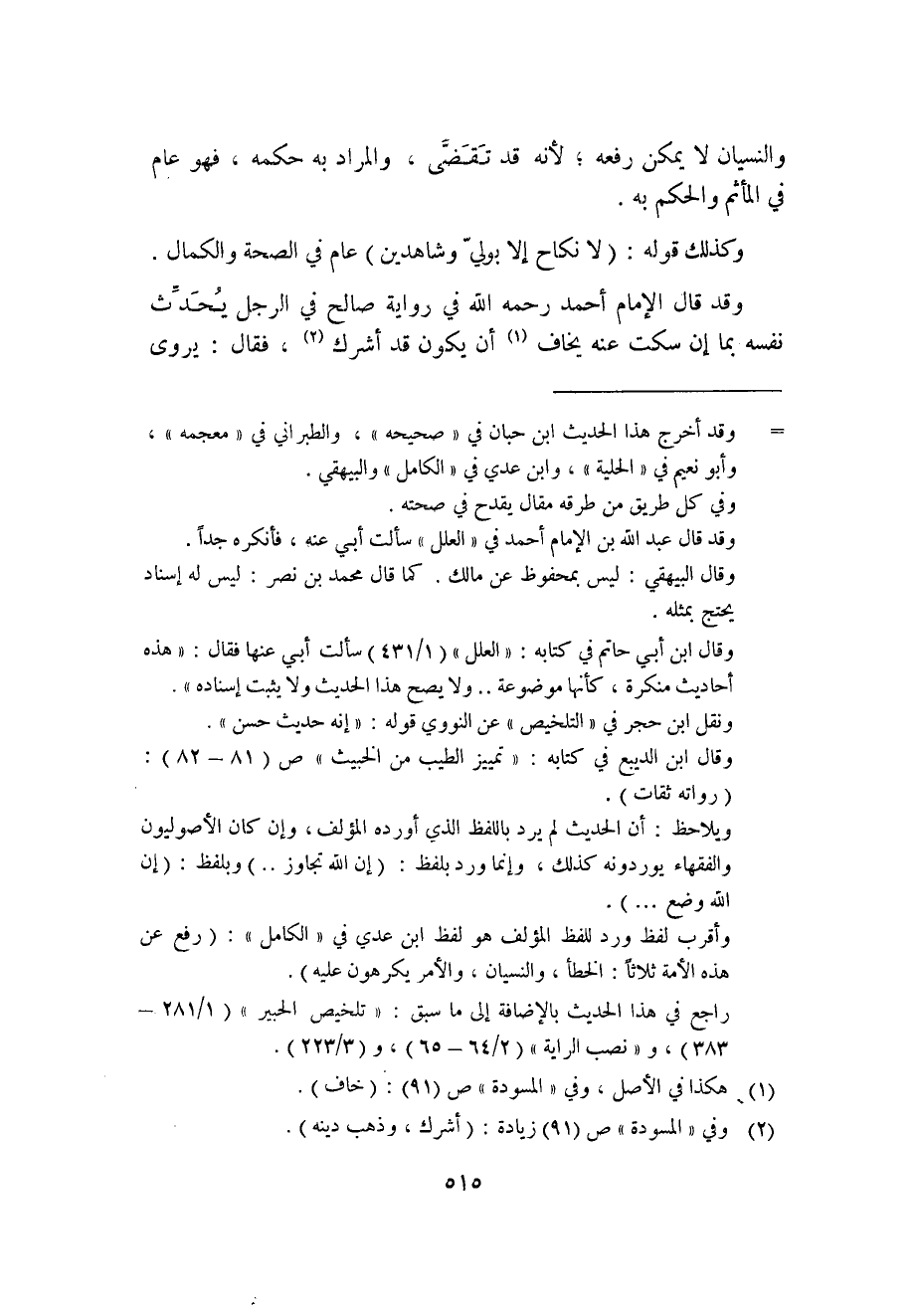ويلاحظ: أن الحديث لم يرد باللفظ الذي أورده المؤلف، وإن كان الأصوليين والفقهاء يوردونه كذلك؛ وإنما ورد بلفظ: "إن الله تجاوز.." وبلفظ: "إن الله وضع ... ".