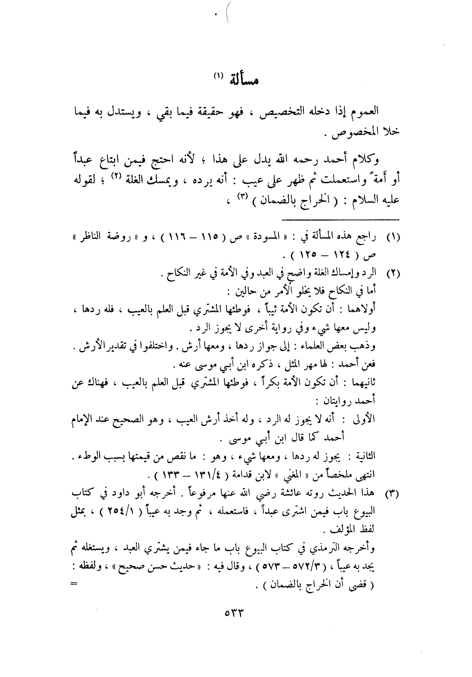 1 راجع هذه المسألة في: "المسودة" ص"115-116"، و"روضة الناظر" ص"124-125".