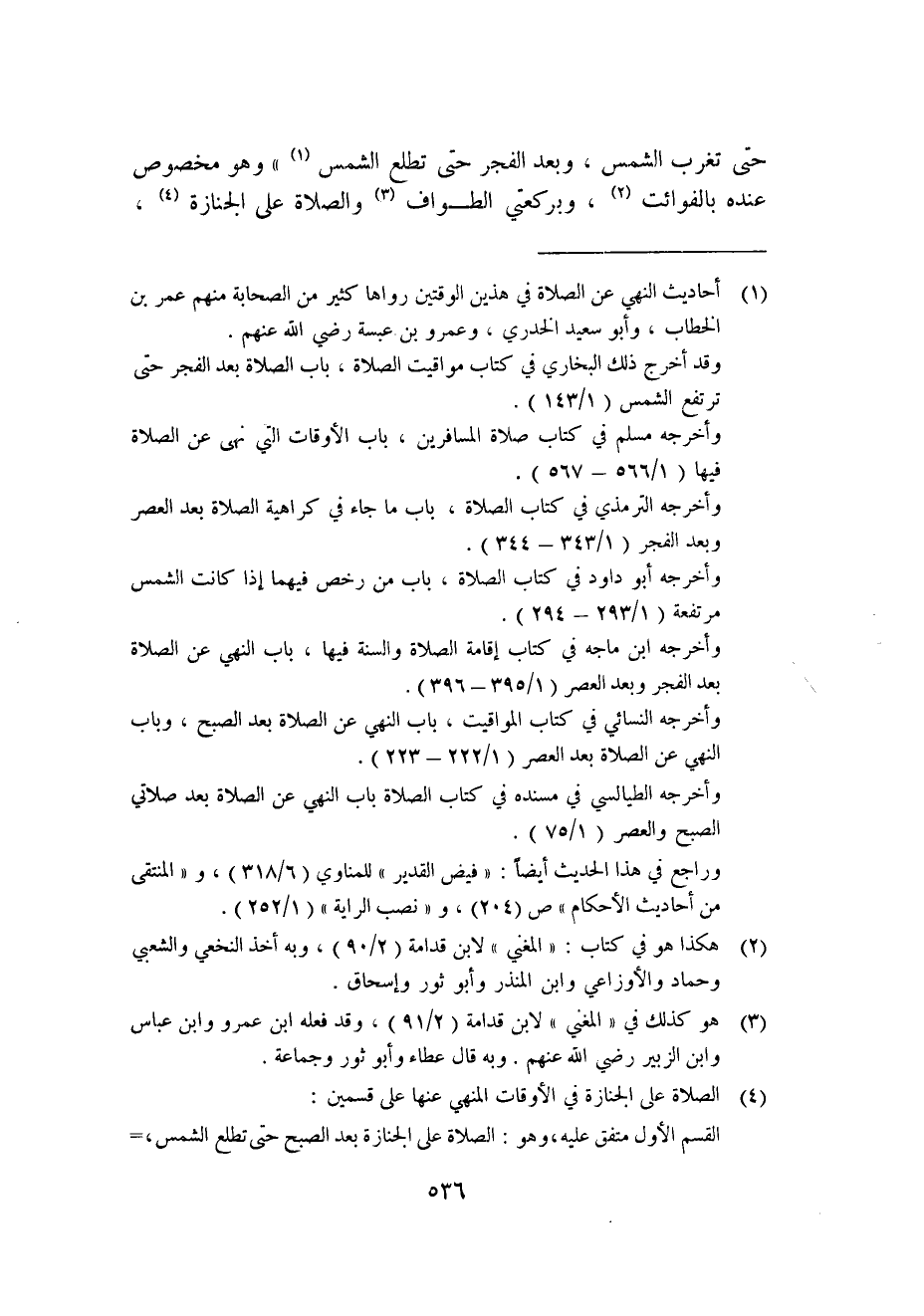 وأخرجه النسائي في كتاب المواقيت، باب النهي عن الصلاة بعد الصبح، وباب النهي عن الصلاة بعد العصر "1/222-223".