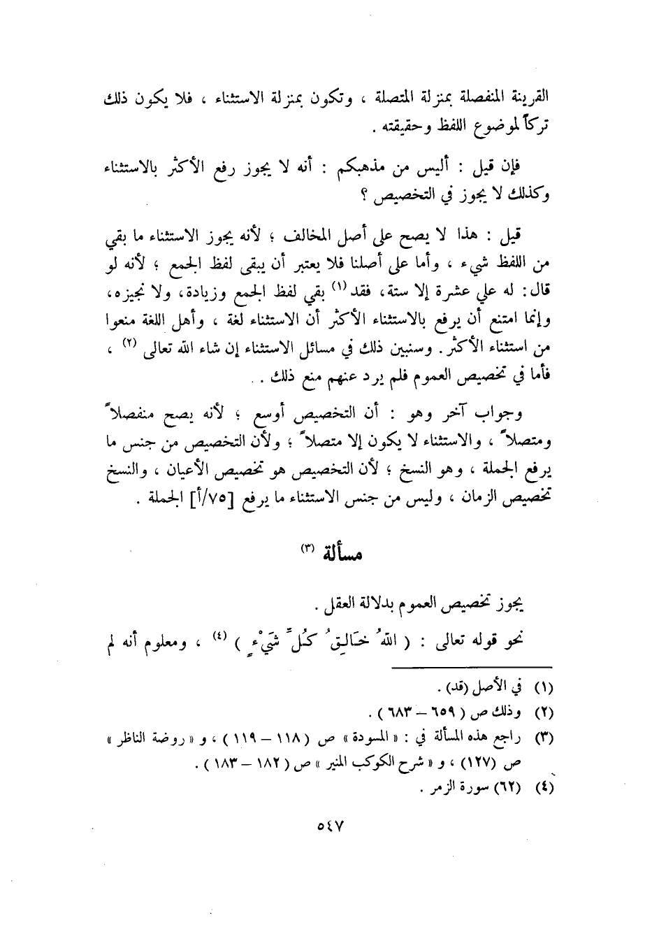 1 راجع هذه المسألة في: "المسودة": "118-119"، و"روضة الناظر" ص"127"، و"شرح الكوكب المنير" ص"182-183".