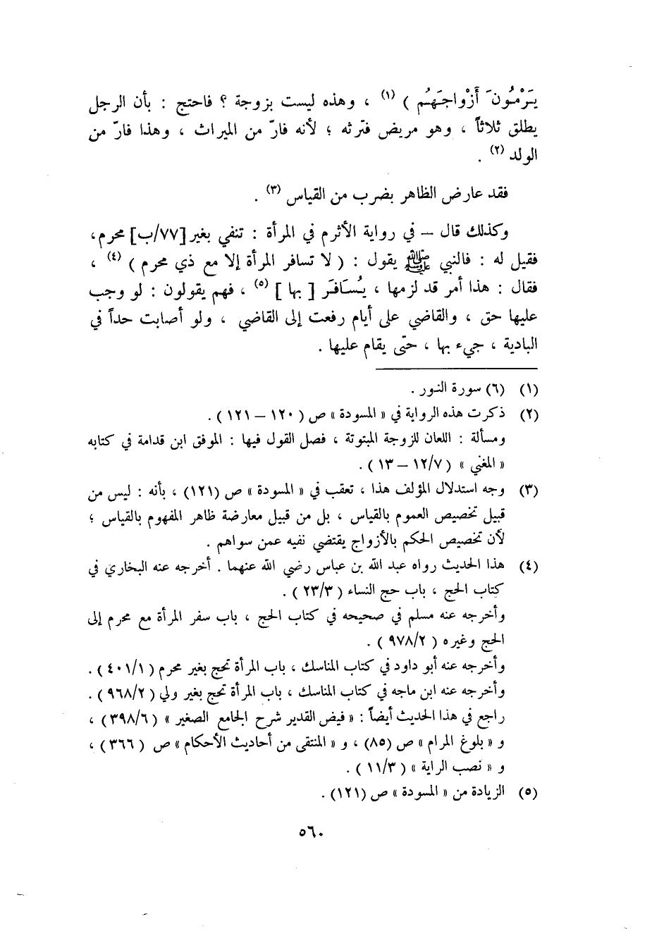 وكذلك قال -في رواية الأثرم في المرأة: تنفي بغير [77/ب] محرم؛ فقيل له: فالنبي صلى الله عليه وسلم يقول: "لا تسافر المرأة إلا مع ذي محرم" 4، فقال: هذا أمر قد لزمها، يسافر [بها] 5، فهم يقولون: لو وجب عليها حق، والقاضي على أيام رفعت إلى القاضي، ولو أصابت حدًا في البادية؛ جيء بها، حتى يقام عليها.