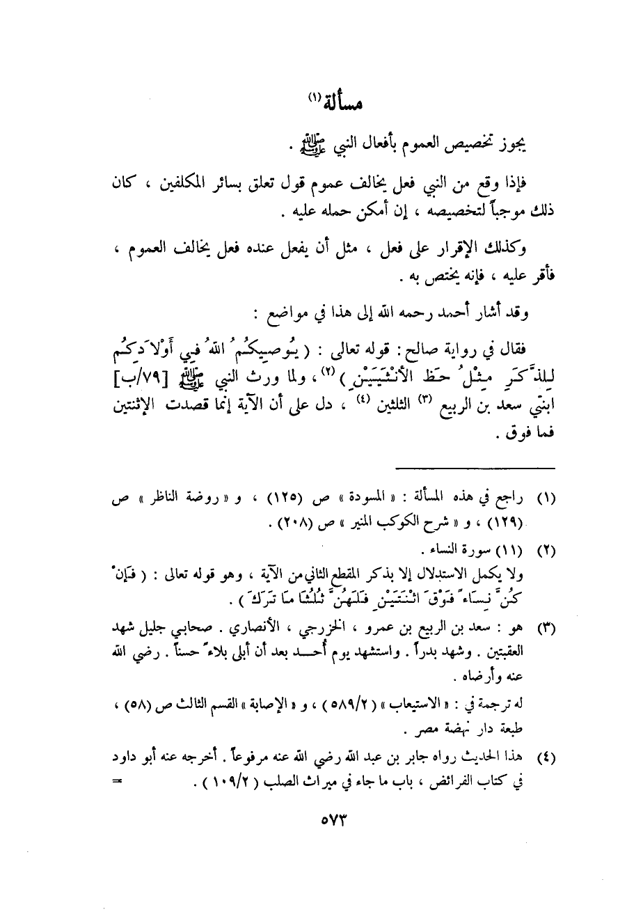 1 راجع في هذه المسألة: "المسودة" ص"125"، و"روضة الناظر" ص"129"، و"شرح الكوكب المنير" ص"208".