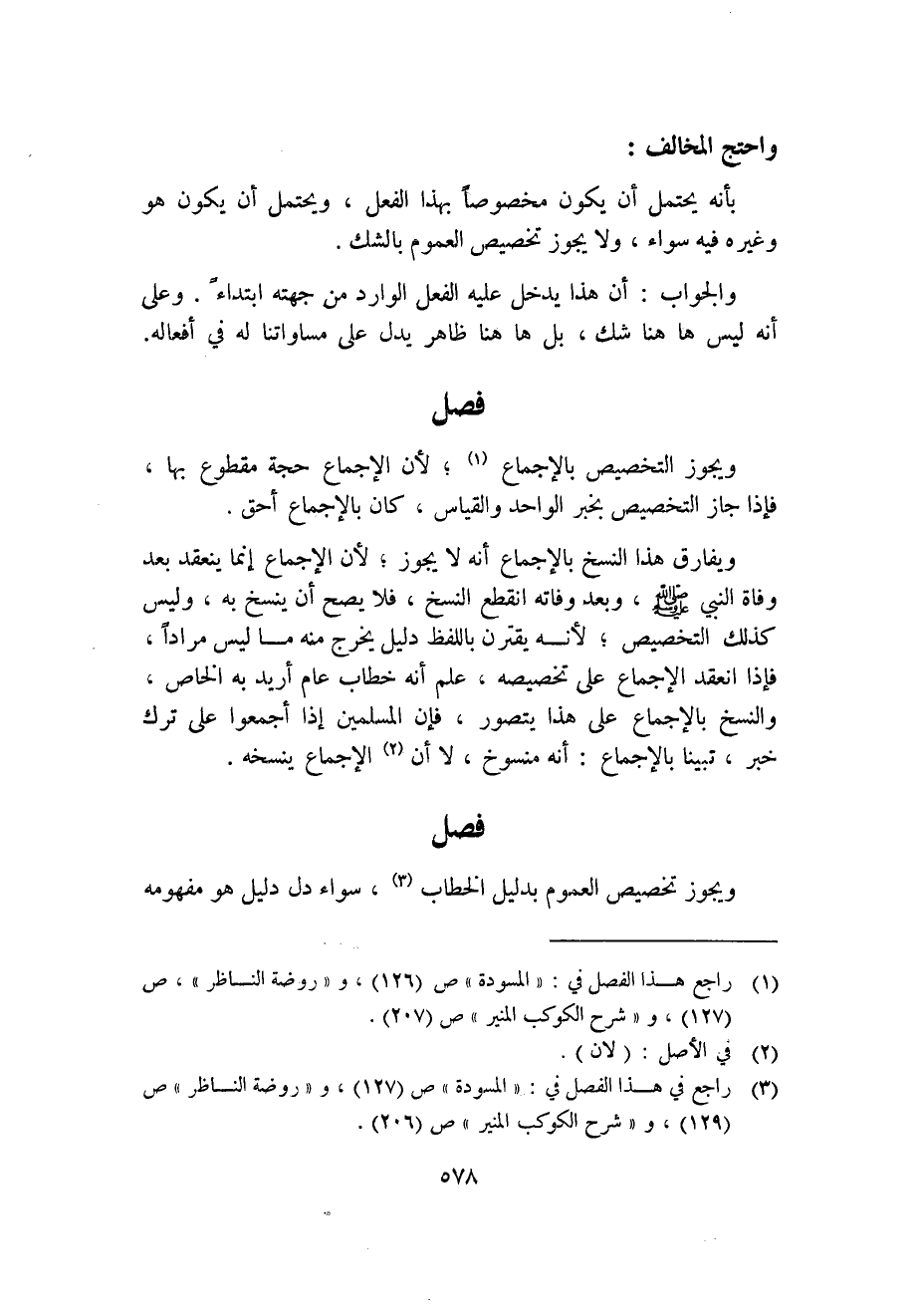 1 راجع هذا الفصل في: "المسودة" ص"126"، و"روضة الناظر" ص"127"، و"شرح الكوكب المنير" ص"207".