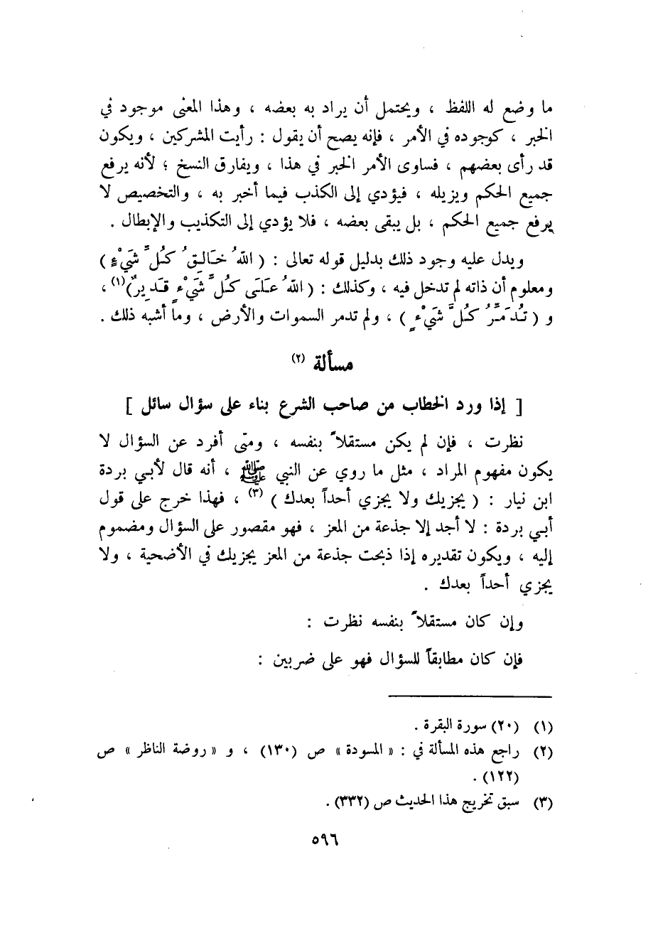 1 راجع هذه المسألة في: "المسودة" ص"130"، و "روضة الناظر" ص"122".