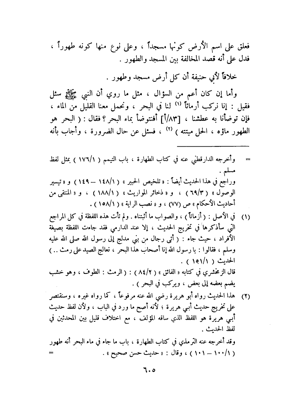 1 في الأصل: "أزماتًا"، والصواب من أثبتناه. ولم تأت هذه اللفظة في كل المراجع التي سأذكرها في تخريج الحديث؛ إلا عند الدارمي فقد جاءت اللفظة بصيغة الأفراد، حيث جاء: "أتى رجال من بني مدلج إلى رسول الله صلى الله عليه وسلم؛ فقالوا يا رسول الله إنا أصحاب هذا البحر، نعالج الصيد على رمث.." الحديث "1/151".