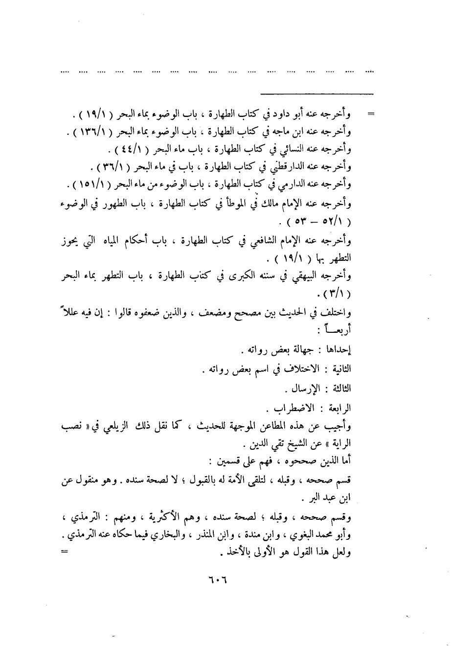 وقسم صححه، وقبله؛ لصحة سنده، وهم الأكثرية، ومنهم: الترمذي، وأبو محمد البغوي، وابن منده، وابن المنذر، والبخاري فيما حكاه عنه الترمذي. ولعل هذا لقول هو الأولى بالأخذ. وراجع في هذا الحديث أيضًا: "بلوغ المرام" ص"3"، و"تلخيص الحبير": "1/9-12"، و"المنتقى من أحاديث الأحكام" ص"8"، و"نصب الراية": "1/96-98"، و"المحرر في الحديث في بيان الأحكام الشرعية" "ص4".