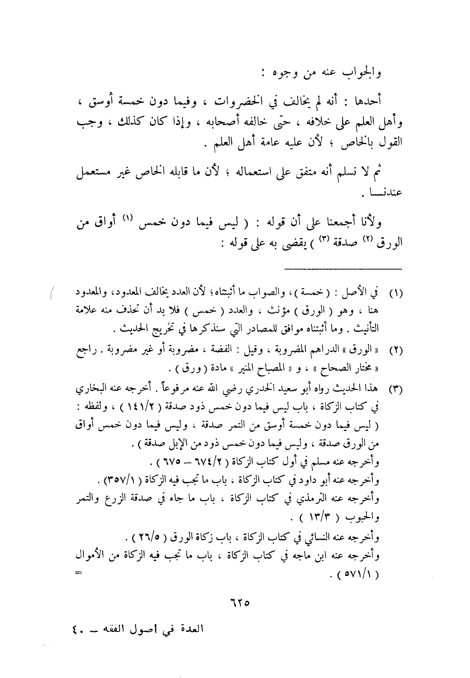 ولأنا أجمعنا على أن قوله: "ليس فيما دون خمس 1 أواق من الورق 2 صدقة" 3 يقضي به على قوله: