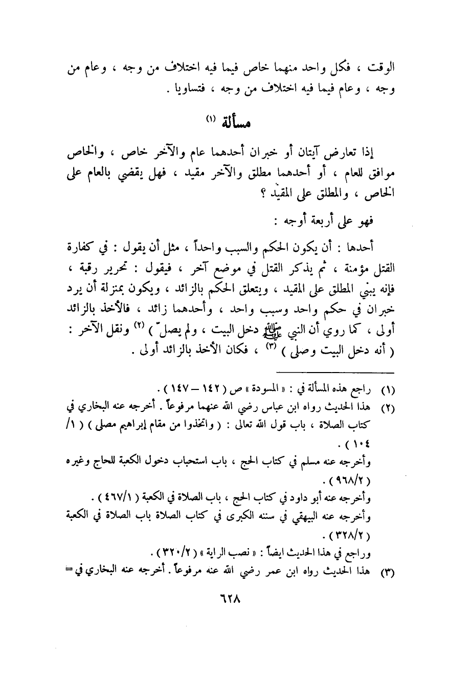 1 راجع هذه المسألة في: "المسودة" ص"142-147".