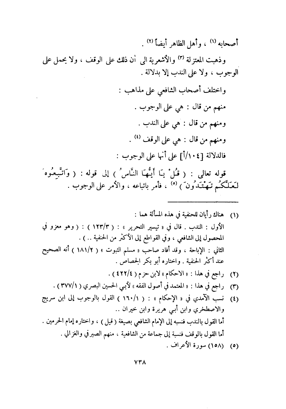 وذهبت المعتزلة (3) والأشعرية الى أن ذلك على الوقف، ولا يحمل على الوجوب، ولا على الندب إلا بدلالة.