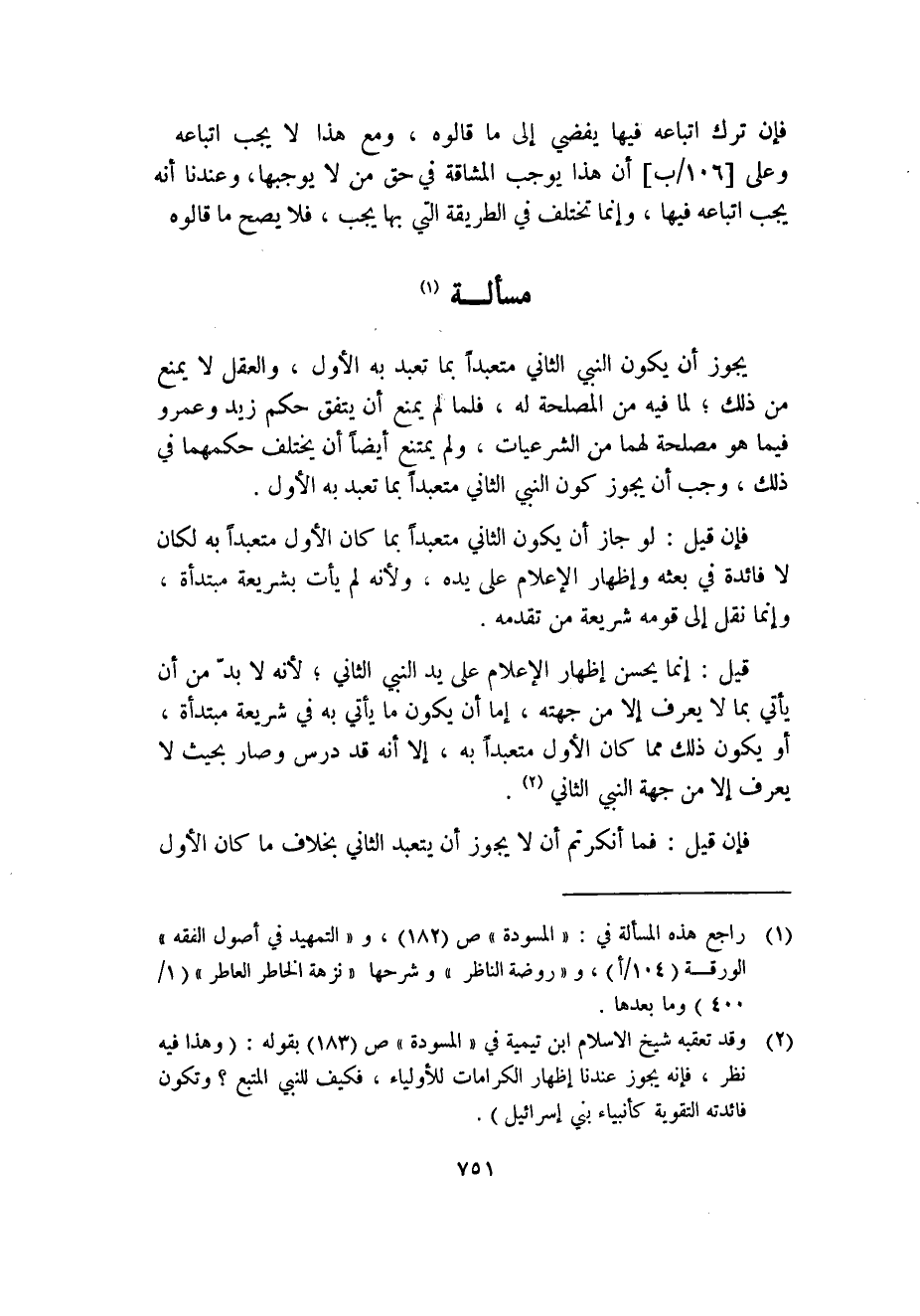 (1) راجع هذه المسألة في: "المسودة" ص (182) ، و"التمهيد في أصول الفقه" الورقة (104/أ) ، و"روضة الناظر" وشرحها "نزهة الخاطر العاطر" (1/400) وما بعدها.