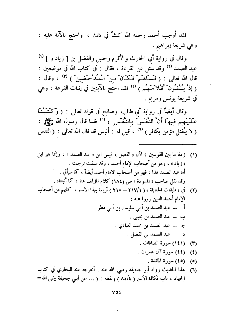 (1) زدنا ما بين القوسين؛ لأن "الفضل" ليس ابن "عبد الصمد"، وإنما هو ابن "زياد"، وهو من أصحاب الإمام أحمد، وقد سبقت ترجمته.