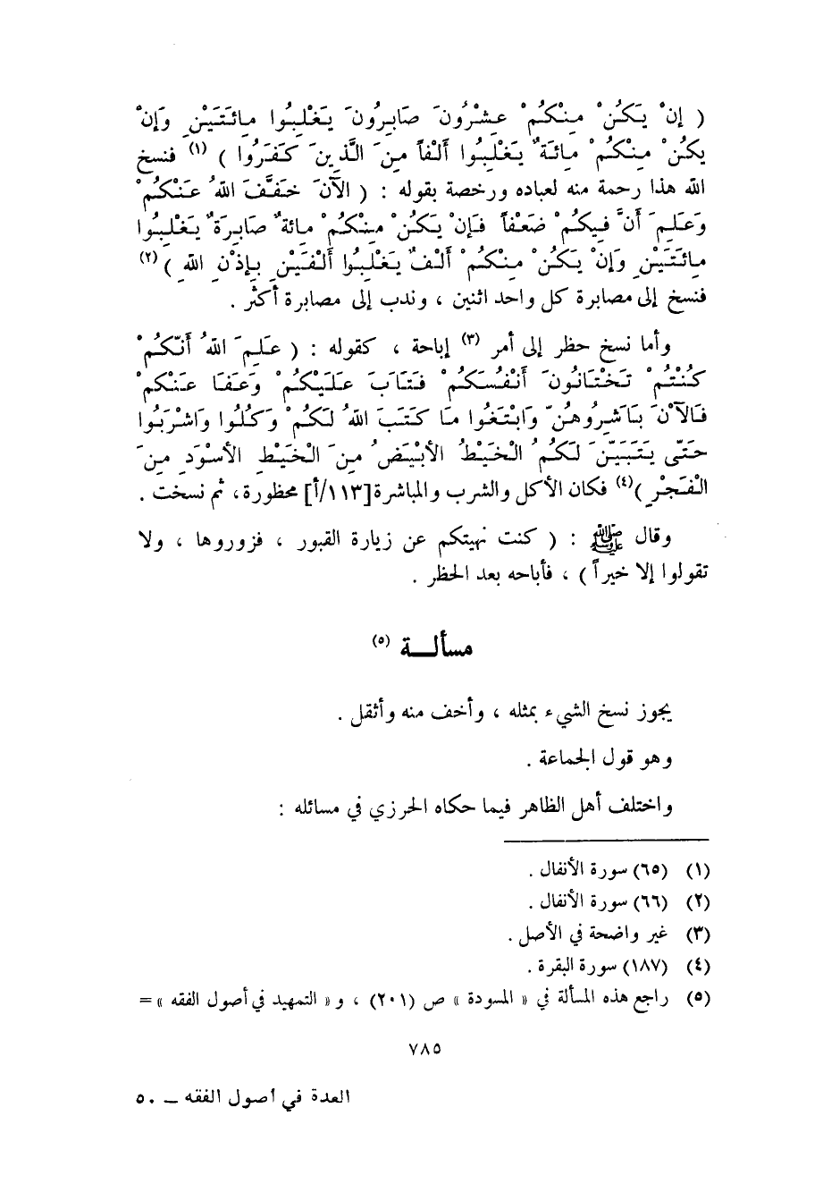 (5) راجع هذه المسألة في "المسودة" ص (201) ، و"التمهيد في أصول الفقه" =