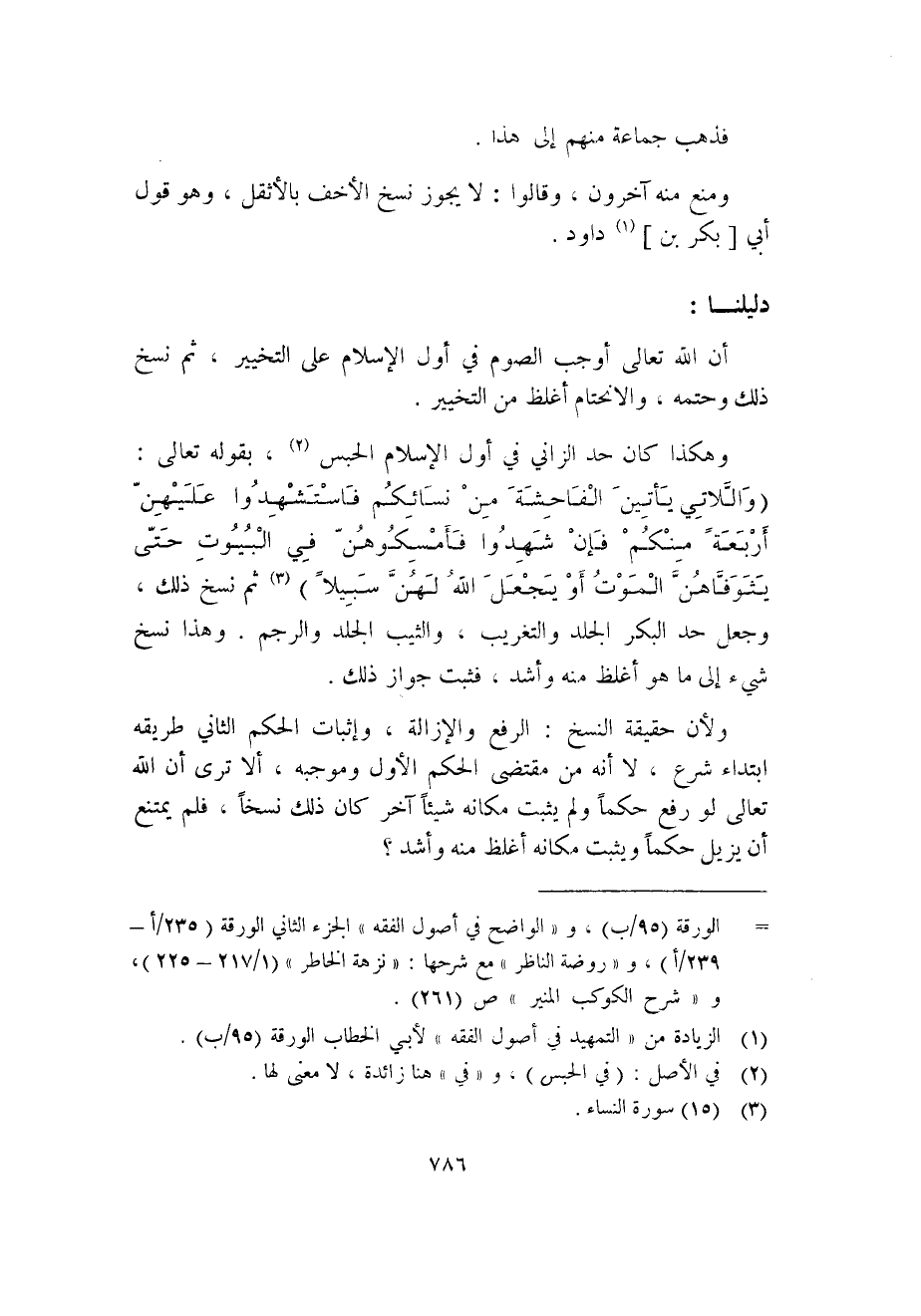 (1) الزيادة من "التمهيد في أصول الفقه" لأبي الخطاب الورقة (95/ب) .
