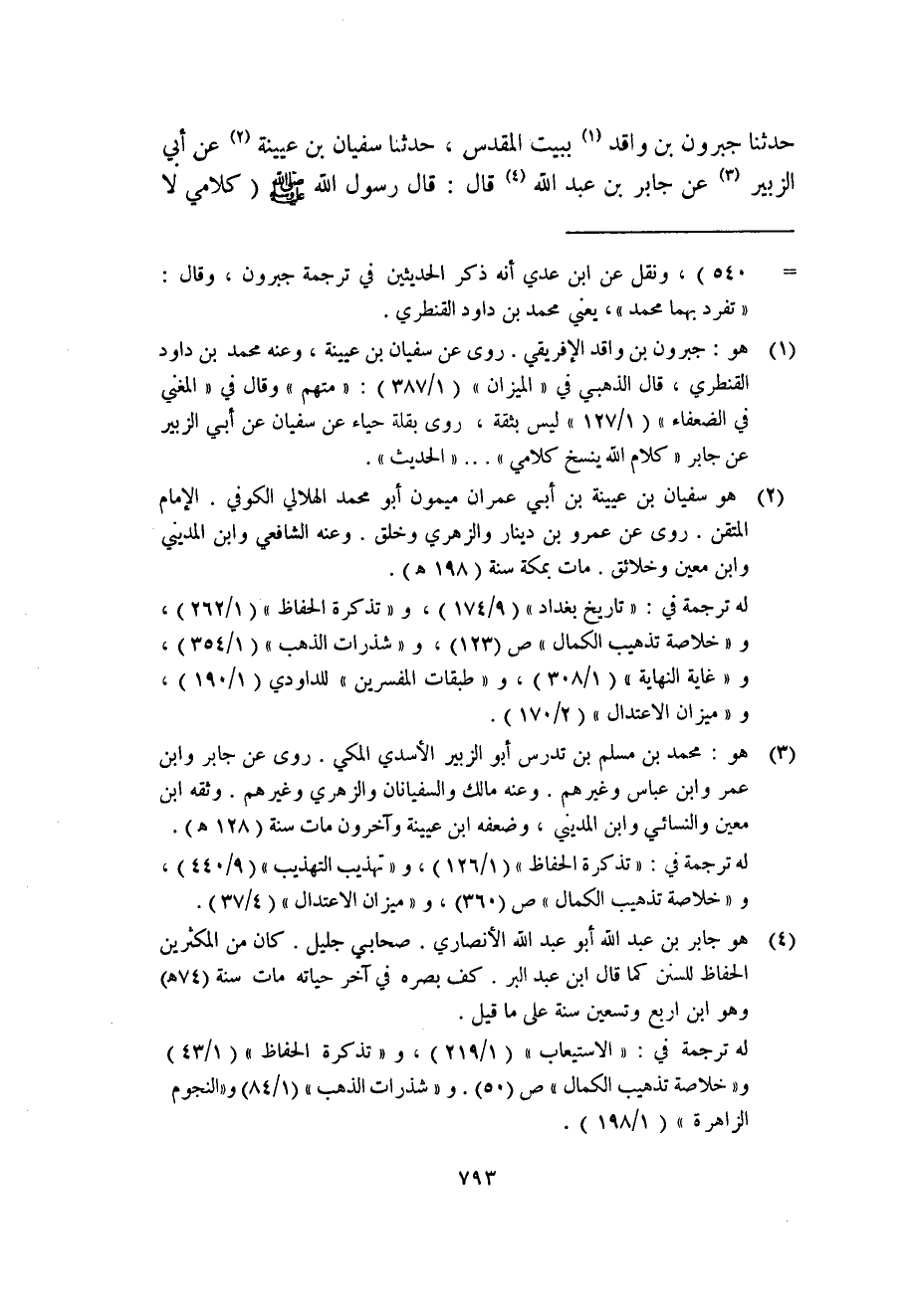 حدثنا جبرون بن واقد (1) ببيت المقدس، حدثنا سفيان بن عيينة (2) عن أبي الزبير (3) عن جابر بن عبد الله (4) قال: قال رسول الله - صلى الله عليه وسلم - (كلامي لا