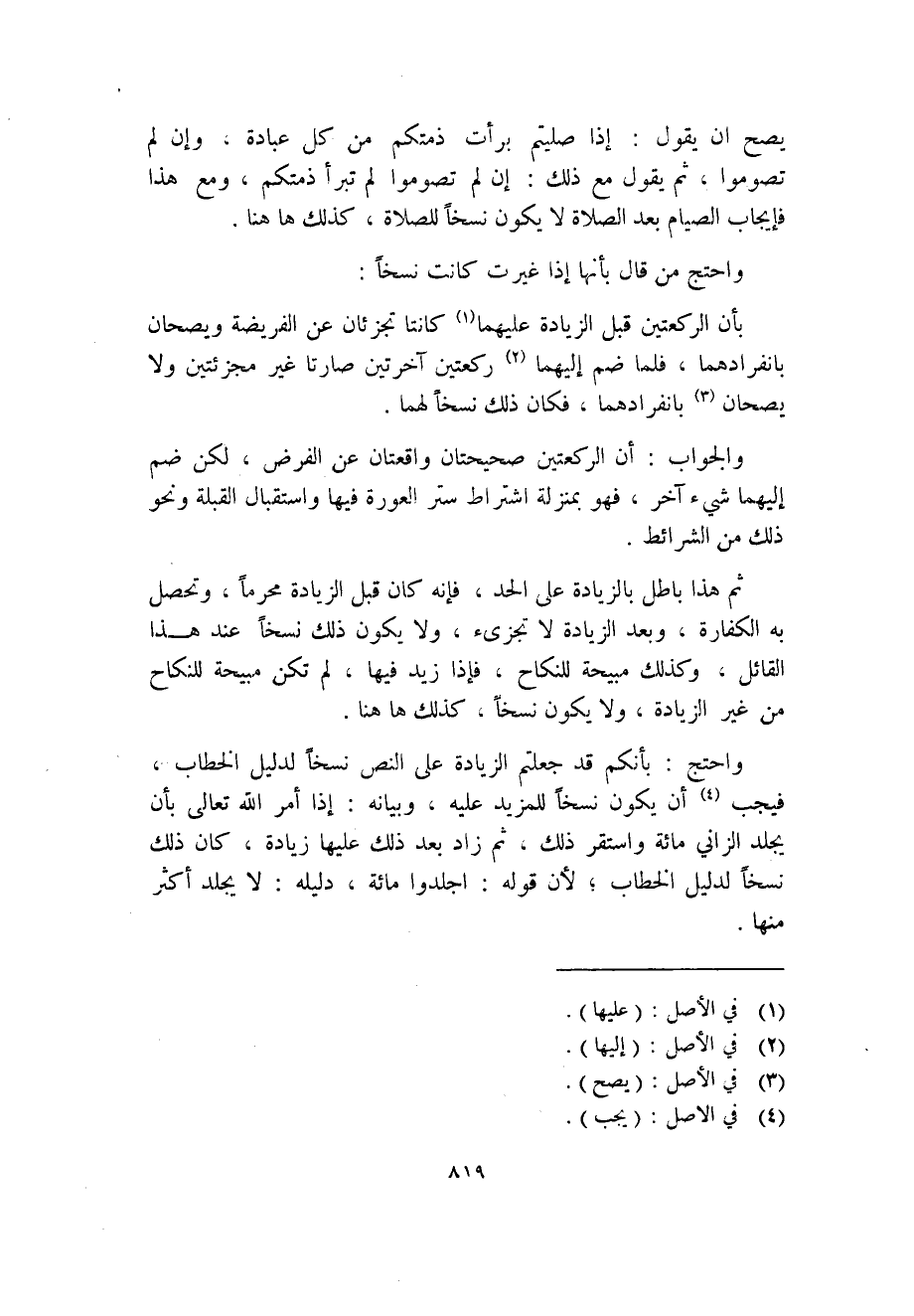 ثم هذا باطل بالزيادة على الحد، فإنه كان قبل الزيادة محرماً، وتحصل به الكفارة، وبعد الزيادة لا تجزىء، ولا يكون ذلك نسخاً عند هذا القائل، وكذلك مبيحة للنكاح، فإذا زيد فيها، لم تكن مبيحة للنكاح من غير الزيادة، ولا يكون نسخاً، كذلك ها هنا.