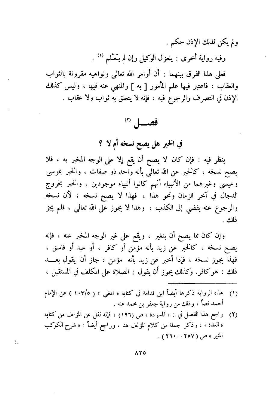 (2) راجع هذا الفصل في: "المسودة" ص (196) ، فإنه نقل عن المؤلف من كتابه