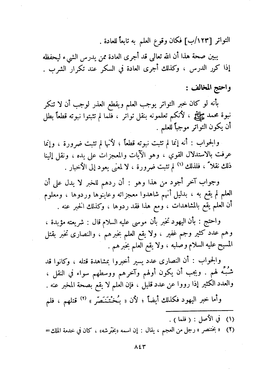 التواتر [123/ب] فكان وقوع العلم به تابعاً للعادة.
