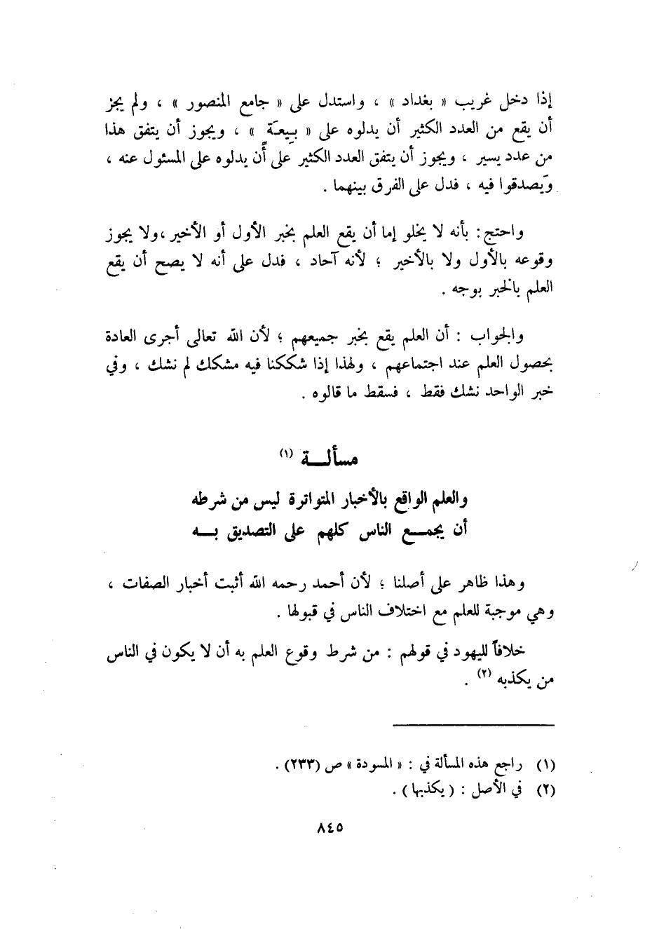 (1) راجع هذه المسألة في: "المسودة" ص (233) .